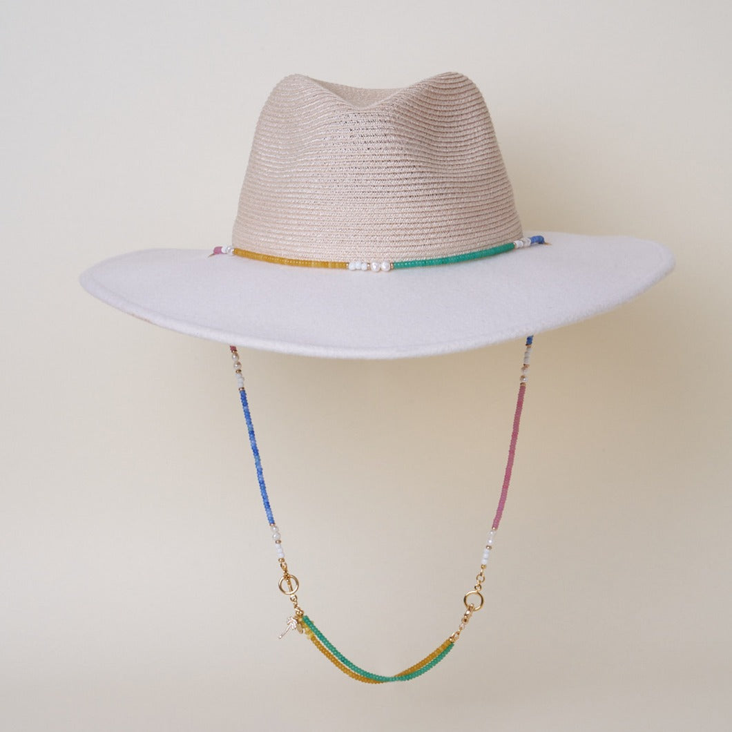 WEAR SHORT: open the spring ring to detach the charm bracelet segment, and re-insert strand's toggle bar into the open ring. Secures hat from wind!